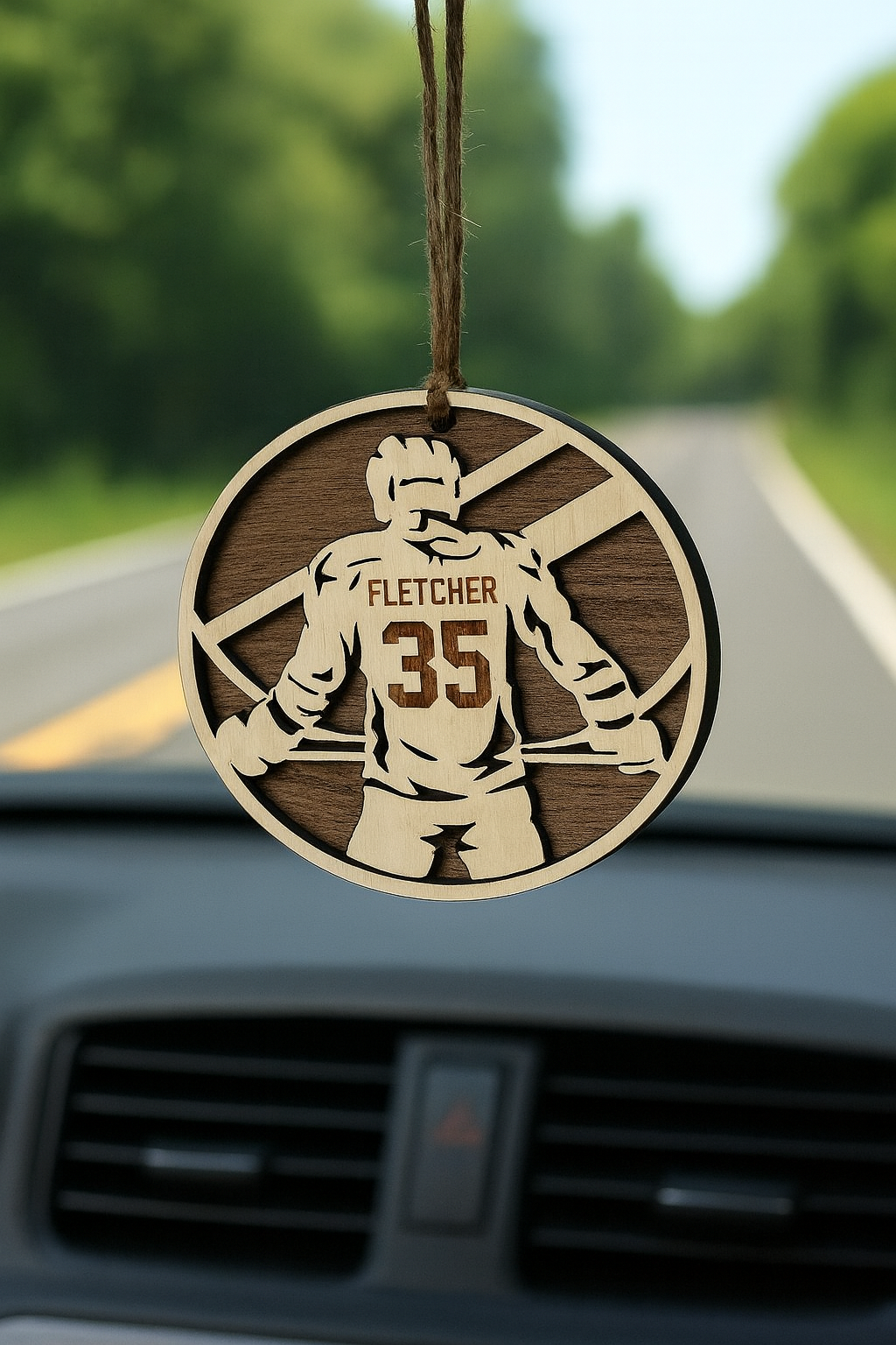 Celebrate your favorite hockey player with a handcrafted wooden hockey ornament, made to order and personalized just for you. Each ornament is laser-engraved with the name and number of your choice, making it the perfect keepsake for players, coaches, fans, and families.